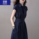 罗蒙(ROMON)女装衬衫连衣裙2025年新款收腰显瘦时尚名媛气质法式设计感小众裙 藏青色 M 100-110